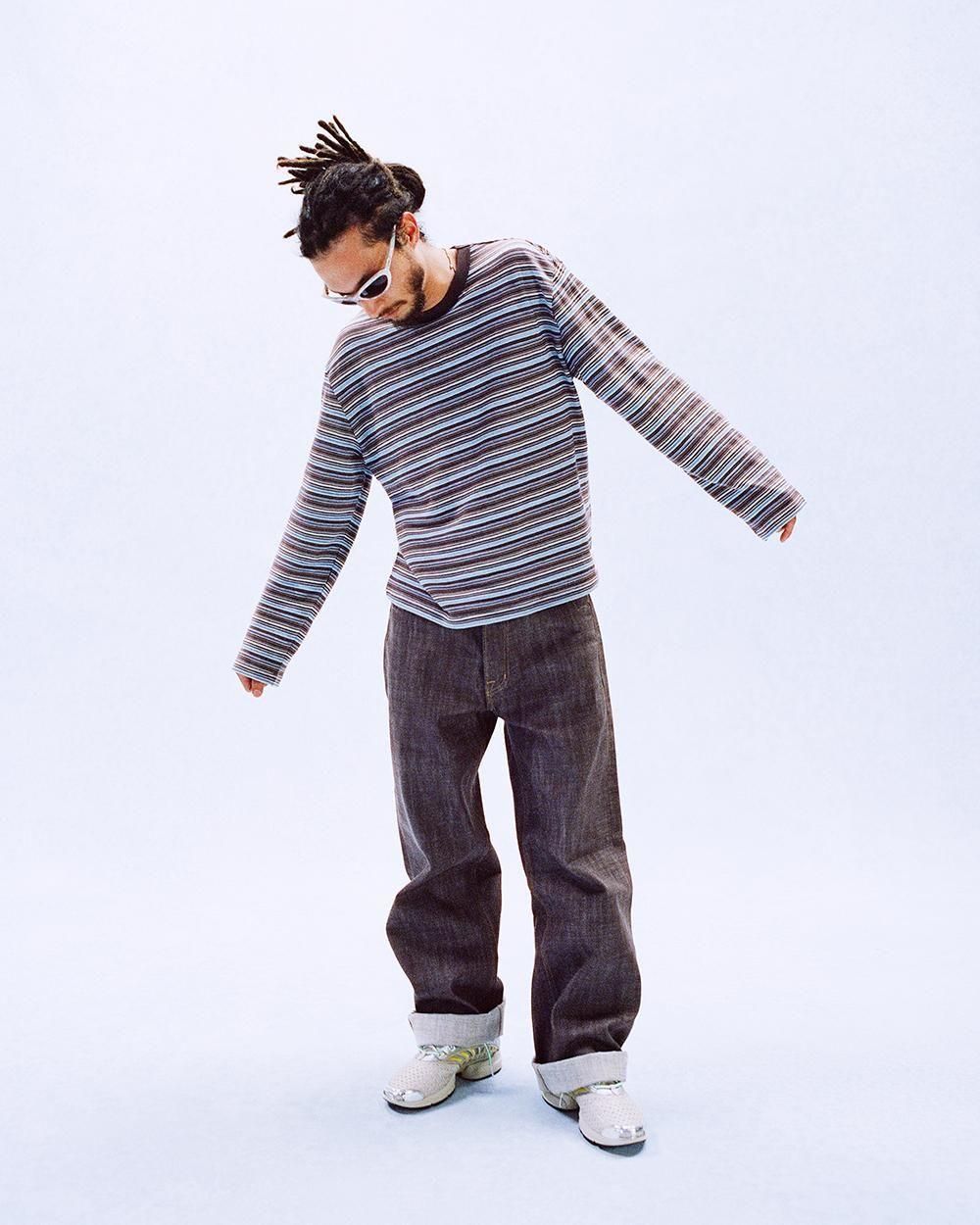 BRAIN DEAD " ROMY MULTI STRIPE LONG SLEEVE T-SHIRT " BROWN MULTI