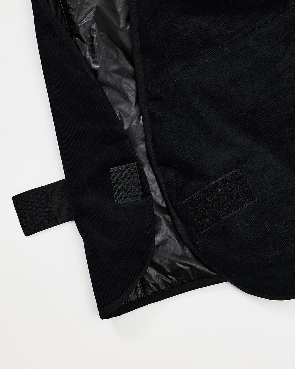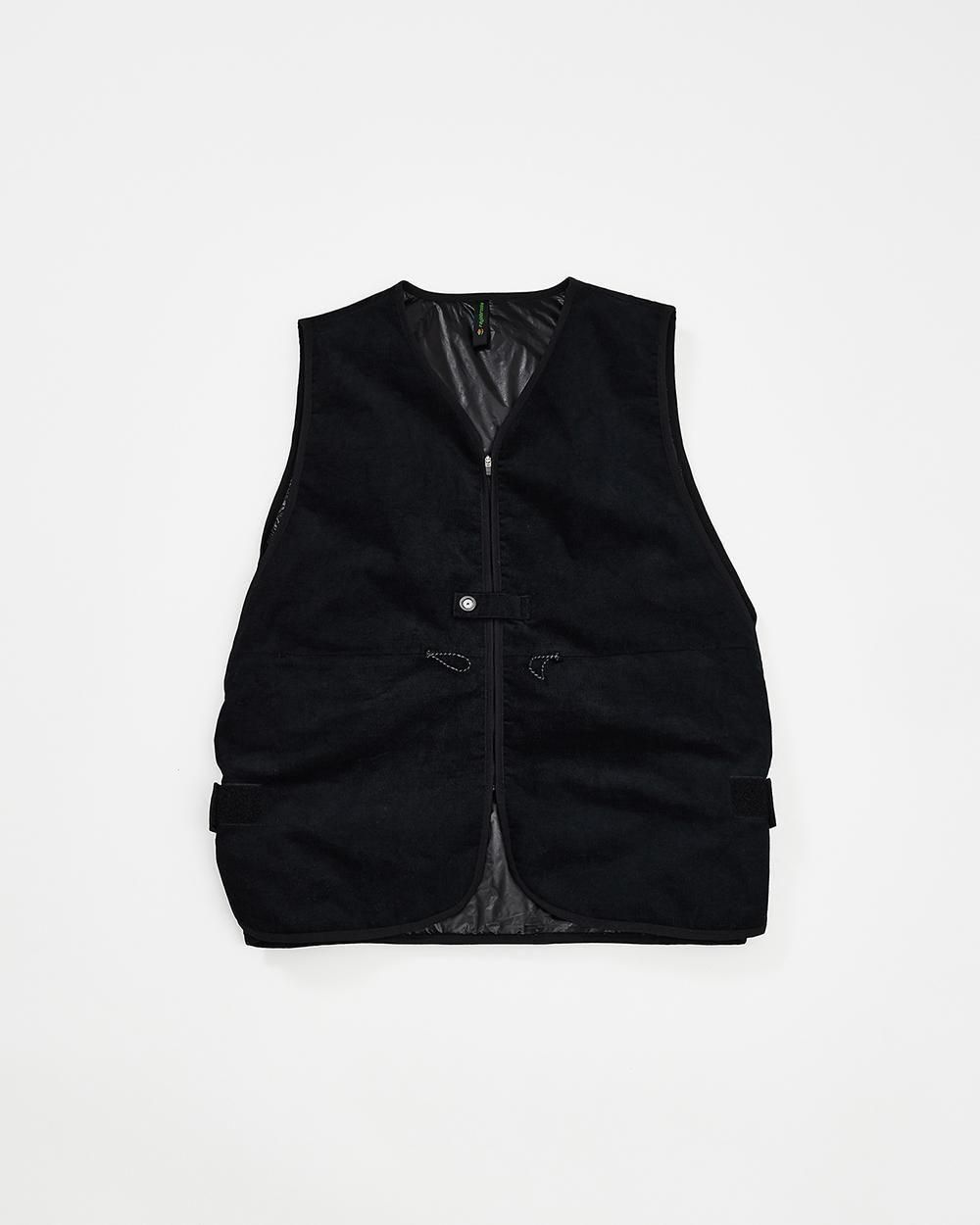 中綿入りのコーデュロイベスト。スポーティーな脇の切替により 若干のサイズ調整や取り外しも可能。